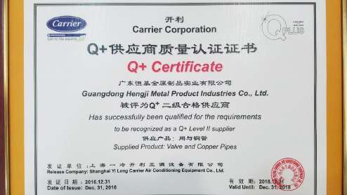 2017開年,便有喜訊傳來,廣東恒基榮獲開利Q+供應商質量認證,被評為Q+二級合格供應商。