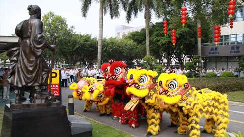 10點45分,舞獅采青,寓意生意興隆。瑞獅騰空一躍,將高高掛起的生菜一口吃下再咬碎吐出,寓意新一年遍地生財!隨后瑞獅口中吐出一本萬利,龍馬精神的美好祝福,將一年的好運與福氣送給所有恒基人!